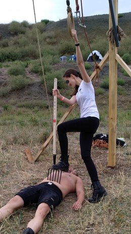 Трамплинг это больше про садизм, она даже не на каблуках, прост на пузе